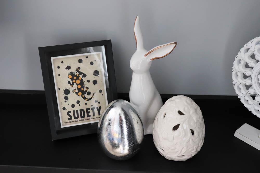 Wszystkie dodatki w apartamencie muszą zatem współgrać z charakterem tego miejsca, co bardzo staraliśmy się uchwycić, ale w minimalistyczny sposób. Z pomocą przyszła marka Losokawood, z którą współpracowaliśmy już w listopadzie. Wtedy dekorowaliśmy nasze mieszkanie przepiękną drewnianą mapą świata z drewna brzozowego. Do Apartamentu U Nas w Sudetach wybraliśmy dekoracje w czarnej kolorystyce, czyli obrazy z drewna brzozowego przedstawiające góry. Zależało nam, aby w trzech strategicznych miejscach pojawiły się elementy przykuwające oko naszego gościa.